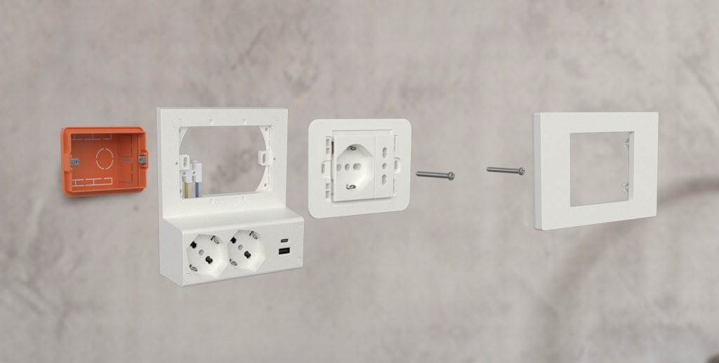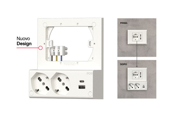 Il principio è semplice: il dispositivo si installa davanti alla placca esistente collegandosi all’impianto tramite cablaggio elettrico. Non è necessario sostituire nulla, non serve modificare la scatola da incasso o provvedere ad alcuna opera muraria. Al fissaggio ci pensano le viti o il nastro biadesivo già inclusi nella confezione e, in pochi minuti, ecco fino a quattro prese aggiuntive eventualmente combinabili con frutti per TV o rete dati.